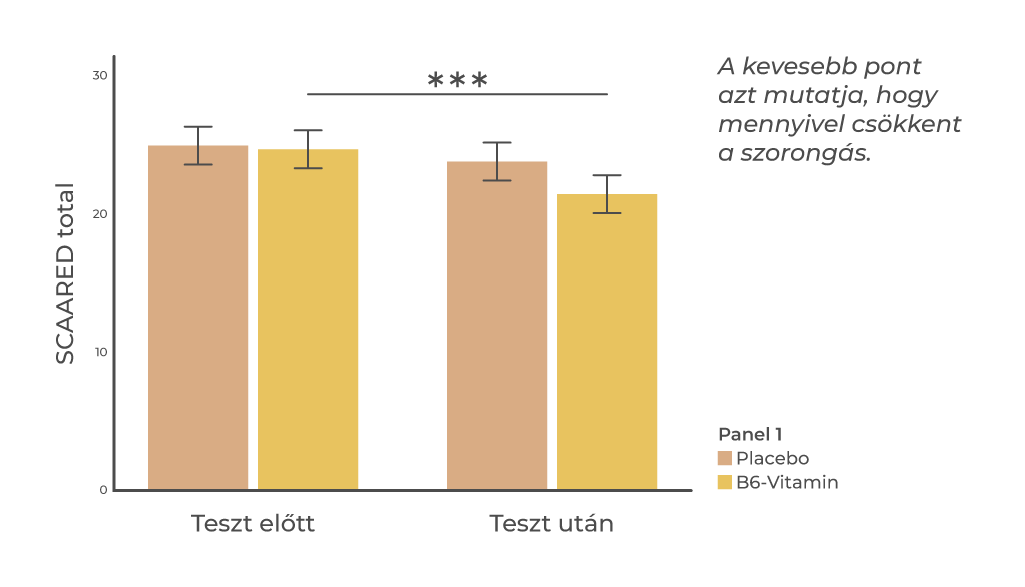 A B6-vitamin pótlása jelentősen csökkentette a résztvevők szorongását, és mind a két teszt alapján javította a hangulatukat a placebo csoport tagjaihoz képest. A B12-vitamin pótlása szintén eredményes volt, azonban kevésbé hatékony módon, mint a B6-vitaminé.